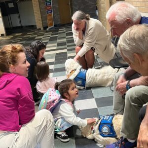 Lutheran Church in Grand Blanc requested that Lutheran Church Charities send Comfort Dogs to assist the grieving community. LCC had dogs on the road, including Magdalene and Eternity, by Monday afternoon. The teams arrived at Faith Lutheran Church in time for a community service held on Monday evening. The Comfort Dog teams also participated in the preschool opening at Faith on Tuesday morning, visiting staff and children. They offered comfort and hope to first responders, including police, fire personnel, the county coroner, and the 911 call center. Additionally, the LCC team visited municipal offices, attended a memorial service, supported nurses near the hospital where the wounded were treated, and engaged with community members encountered on the streets, in restaurants, and at the team’s hotel.